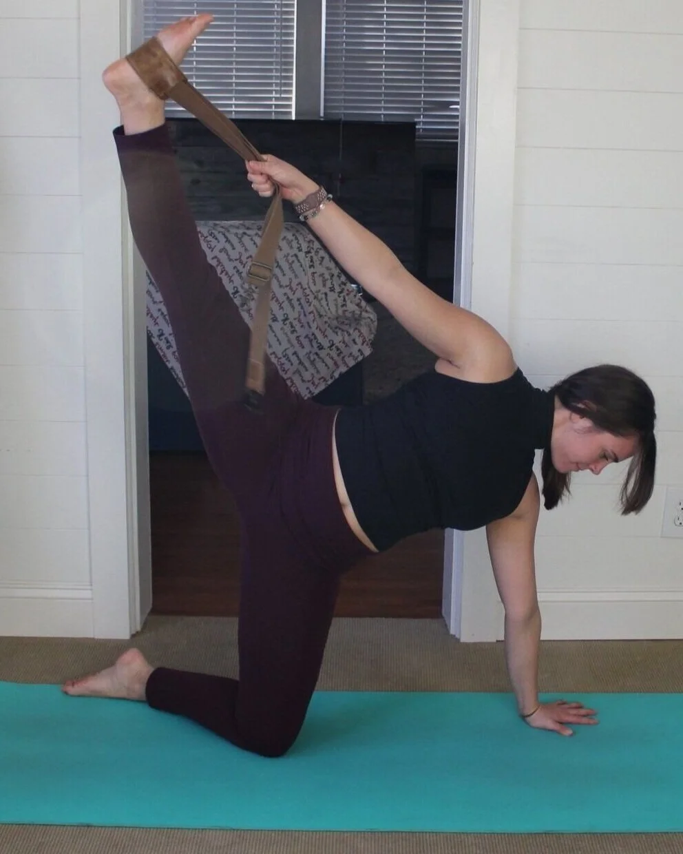 True story, I didn’t have a yoga strap at the time, so I used the strap from my briefcase.